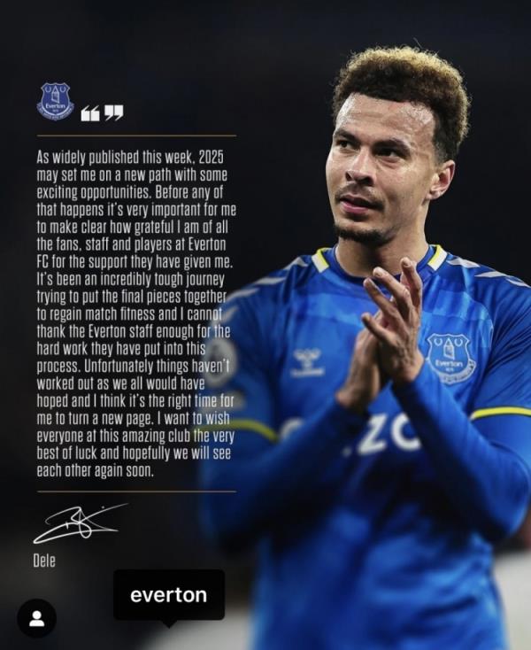 阿里寫道:“正如本周大家廣泛談?wù)摰哪菢樱?025年我可能會走上一條新的道路,因?yàn)橛幸恍┝钊烁械脚d奮的的機(jī)會。在這一切發(fā)生之前,我必須要先明確的表達(dá)一下我對于所有球迷的感激之情,以及埃弗頓所有工作人員以及球員對我的支持。